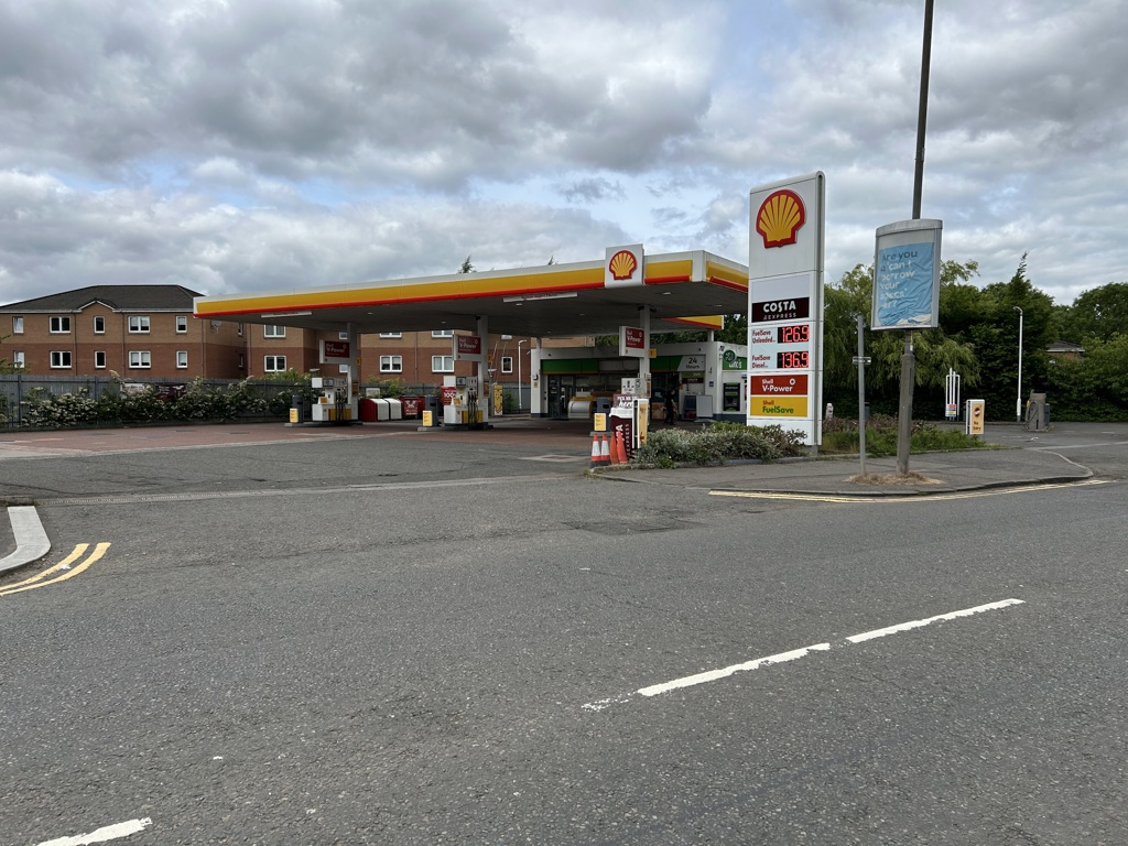 This modern Shell Petrol Filling Station occupies a prominent roadside position with a functional forecourt layout and small convenience store. The site benefits from ancillary services including EV charging, jet wash, air and water facilities.
